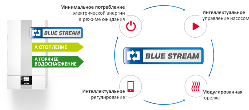 которая просто делает конденсационные котлы WOLF ещё лучше. Концепция эффективности BLUE STREAM® от WOLF базируется на 4 основных преимуществах в сравнении с предыдущими конденсационными котлами: