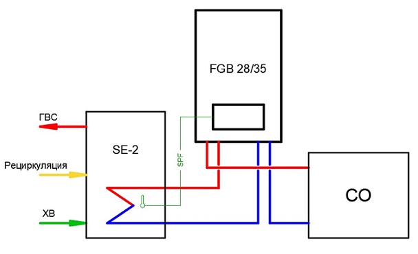 Схема 1. Двухконтурный котел, работающий на отопление и горячее водоснабжение
